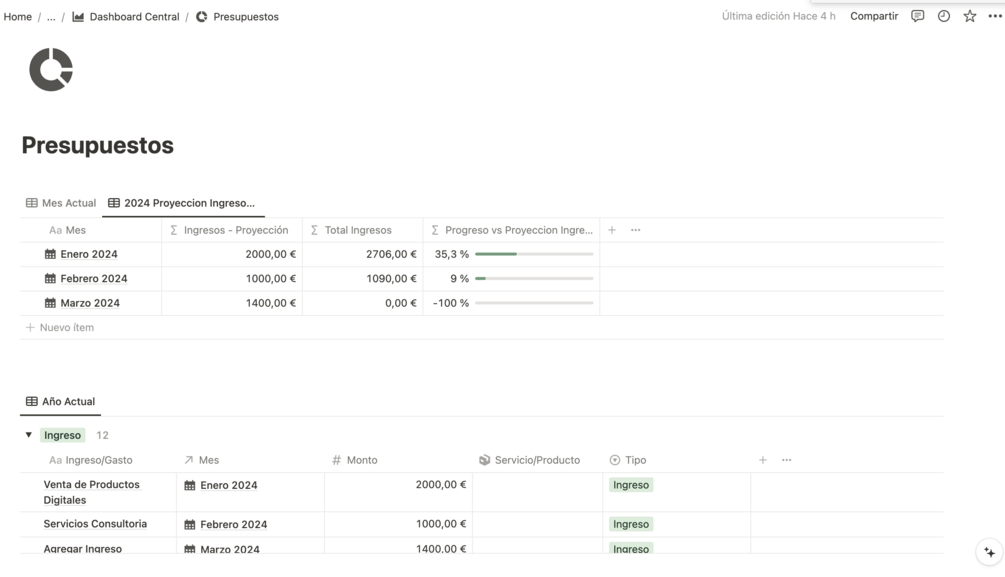 - Incluye gastos por categorías.