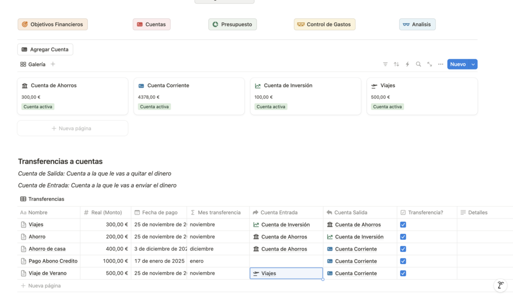 - Implementación de las últimas actualizaciones de Notion para poder llevar un registro mas sencillo de tus gastos en el día a día.