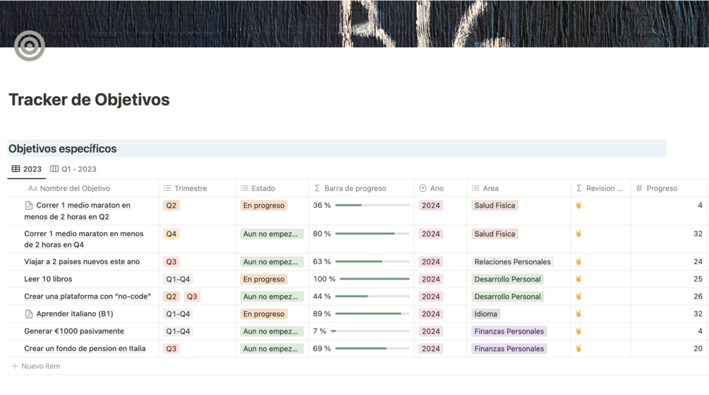 - Vista personalizada para visualizar Objetivos en curso y completados.