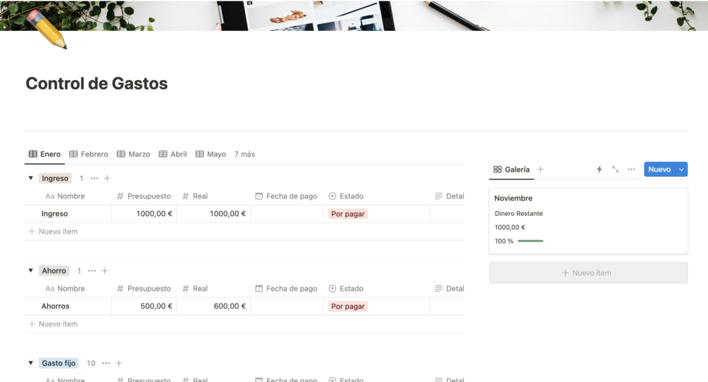 - Forma estructurada de visualizar tu presupuesto (ingresos, gastos fijos, gastos variables).