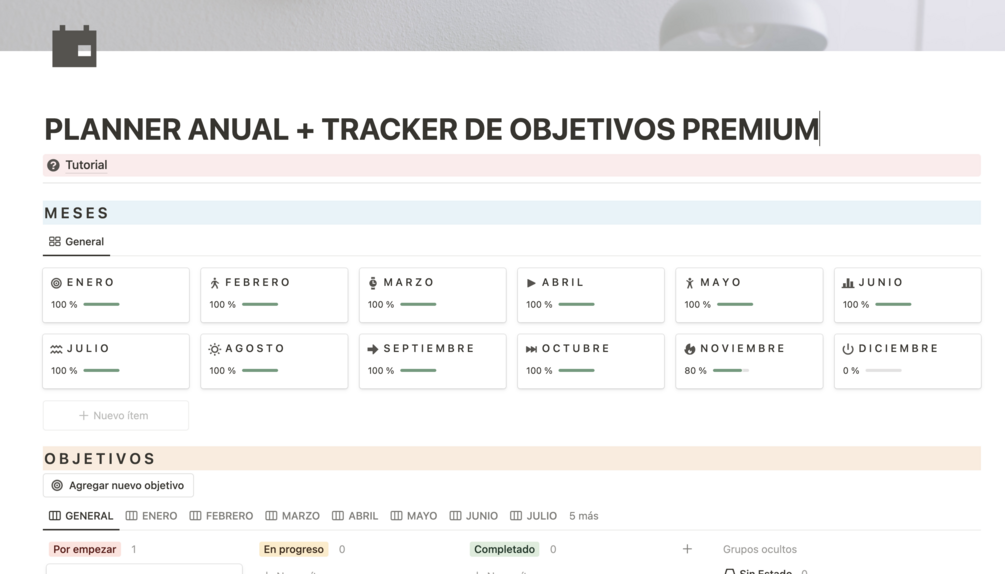 ¿Que incluye la Plantilla "Planner Anual + Tracker de Objetivos Premium"?